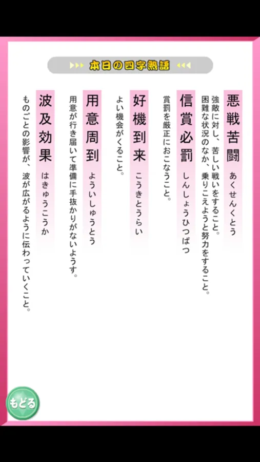 救出に成功したら、四字熟語の解説も見れちゃうよ。