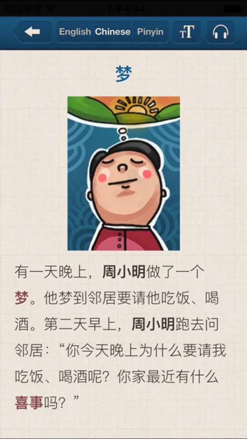 7. The audio version of each story enables you to listen to standard Chinese and to train your Chinese listening skill.
