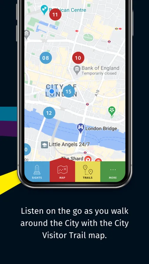 You can listen on the go as you walk around the City with the City Visitor Trail map, as the app tracks your location to bring up the right content at the right time. Or you can just listen from a distance and enjoy fascinating stories about the City of London.