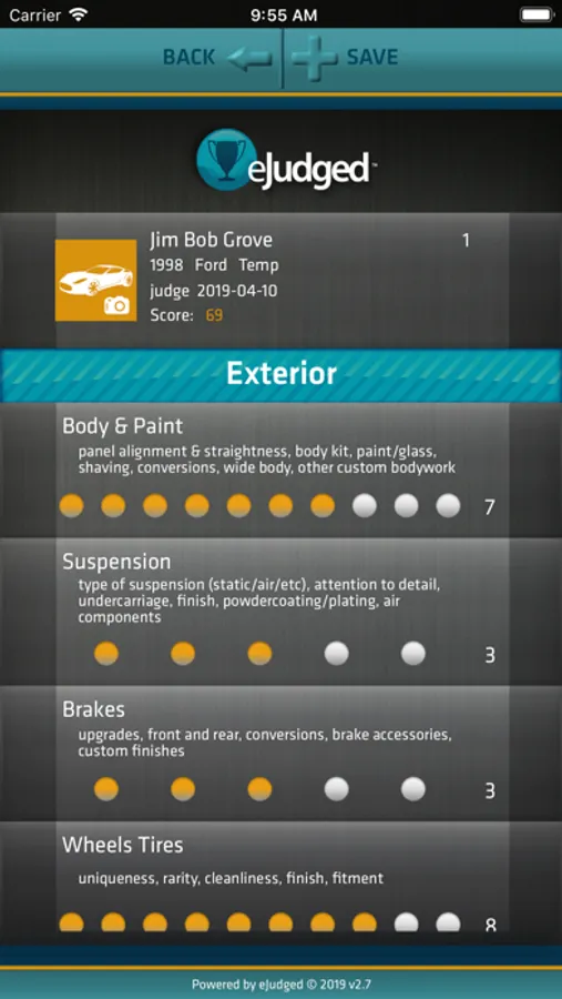 eJudged is a state-of-the-art application that calculates results in real-time. Blending the ease of a mobile app with a synchronized paperless system, eJudged provides car show event managers with a time-saving practice that increases efficiency while decreasing overhead. This application streamlines and smooths out the judging process, enhancing the success of show promoters, managers and entrants. eJudged has the ability to revolutionize the car show industry, all while producing valuable vehicle analytics.