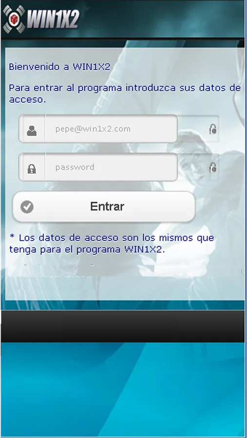 App complementaria al programa WIN1X2. El programa de quinielas más difundido en la historia del 1X2, capaz de generar las combinaciones más sofisticadas y ambiciosas, disponible para todos los aficionados al mundo del 1X2.
