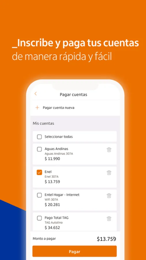 Pagos y más: inscribe tus cuentas de servicios, paga tu línea de crédito y explora ofertas exclusivas.