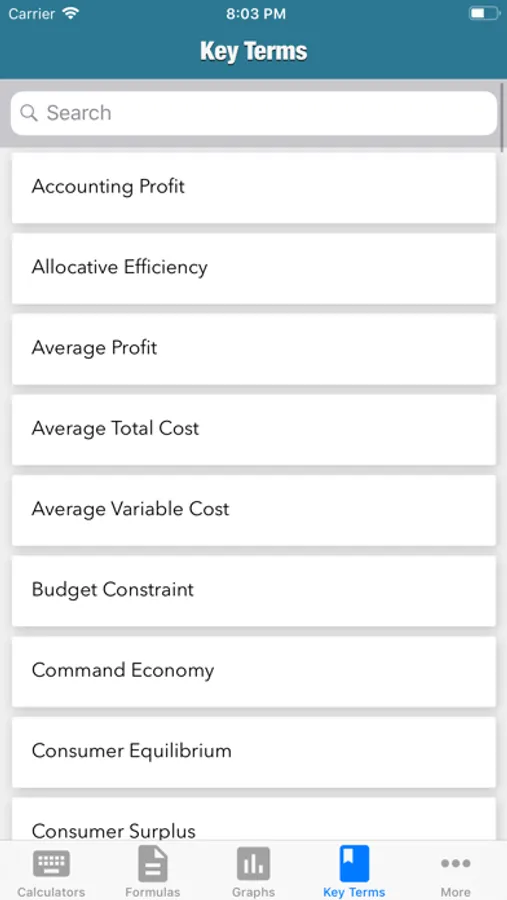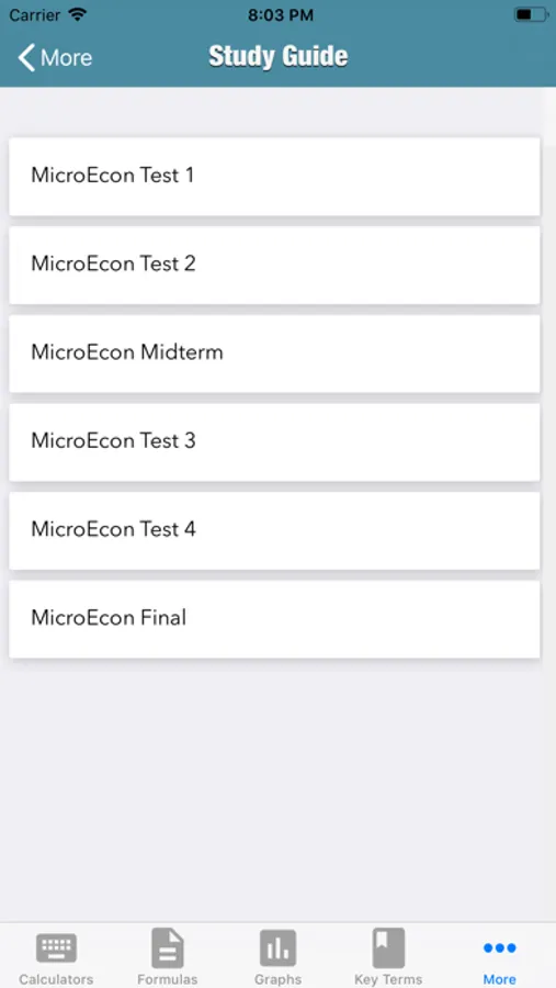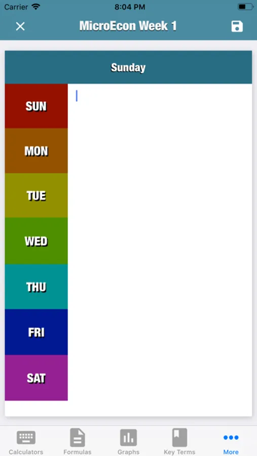 MicroEcon provides the student with the core formulas of microeconomics, basic microeconomics calculators to assist the students with their homework and studies, key terms section, most used graphs section, a section to take notes for class, a study guide builder, and a weekly planner.