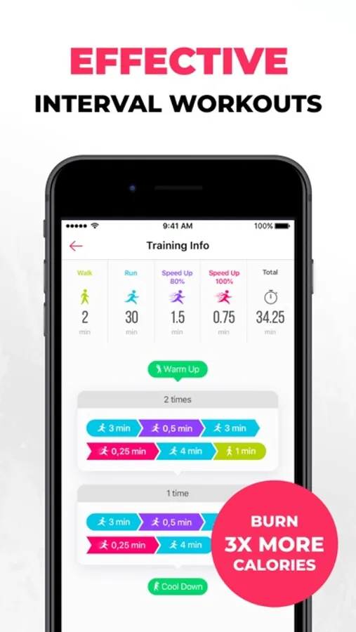 Burn maximum of calories with interval plans, made of running, walking and sprint intervals.