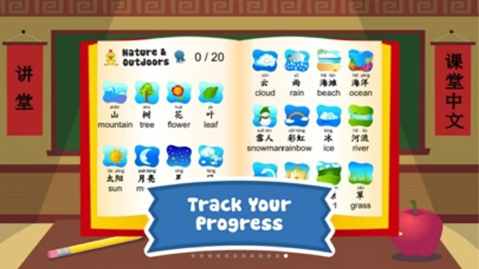 Kids Learn Mandarin is a fun, educational game that will teach your child to speak, write and read over 200 Mandarin Chinese Words.