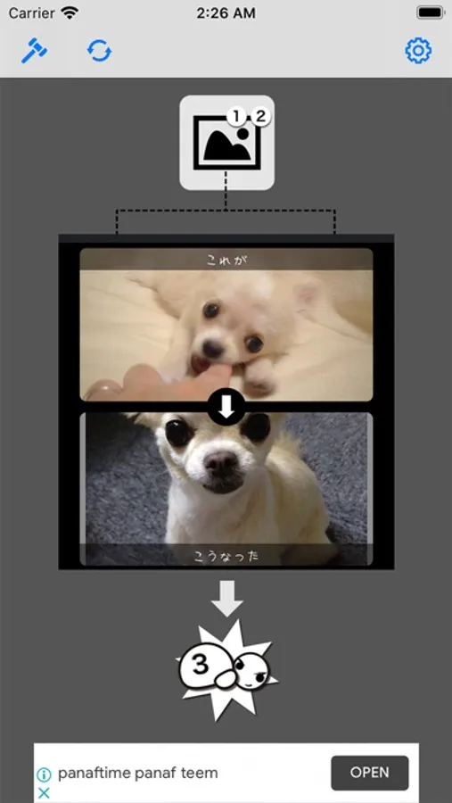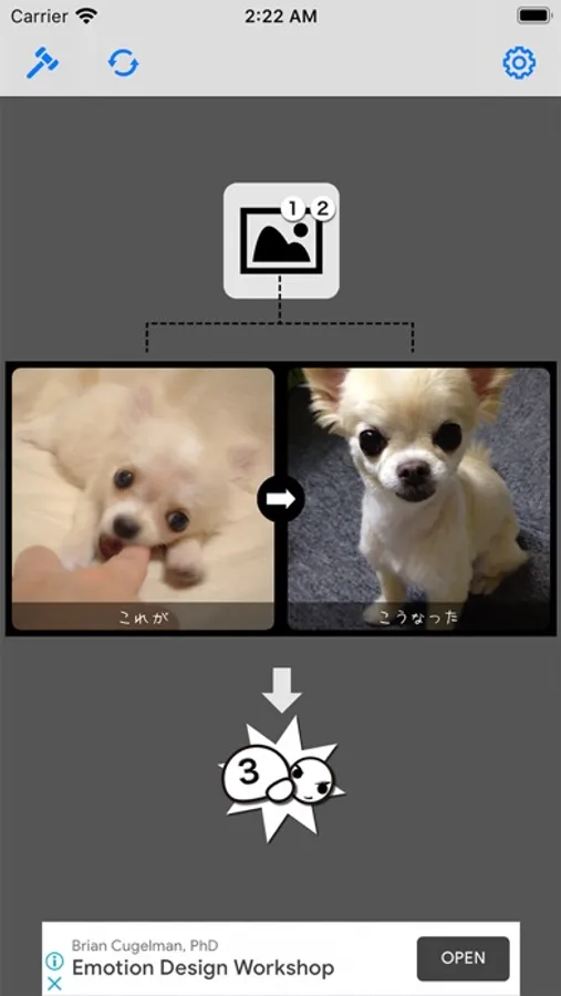 MUSHIKAGO's OneTwoPunch application combines two of your photos into a single image to capture amusing "before and after" moments.