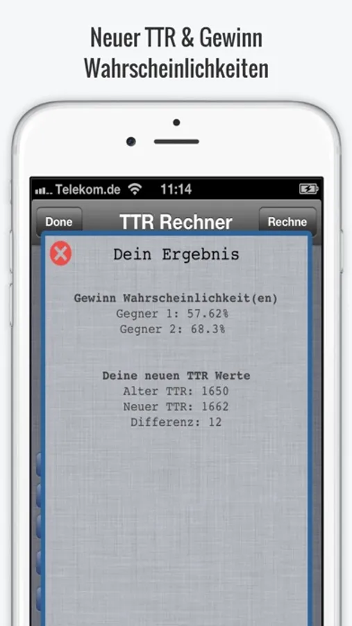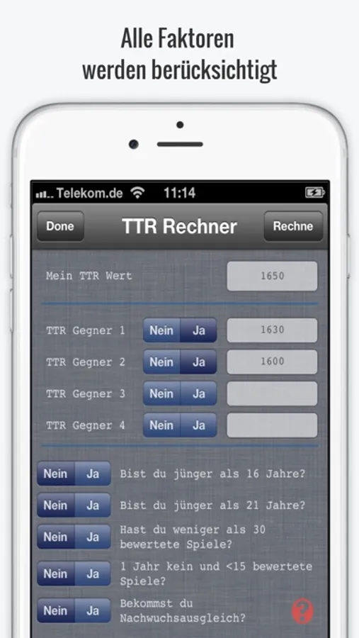 Die TTR-Rechner App ermittelt kostenlos dein Tischtennis-Rating (TTR).