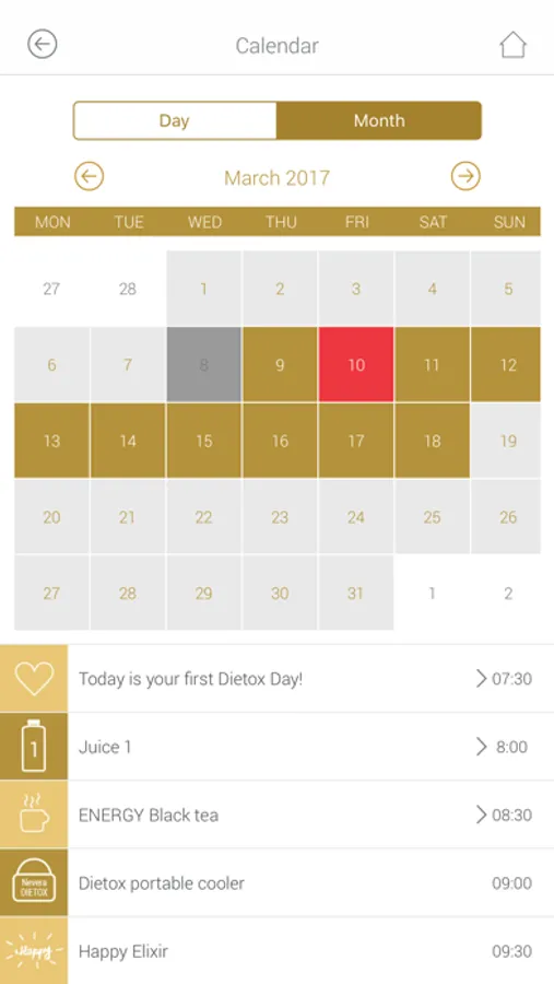 It's very simple, just choose your plan, choose your starting date and the app will automatically generate a calendar so you can follow your plan by the hour.