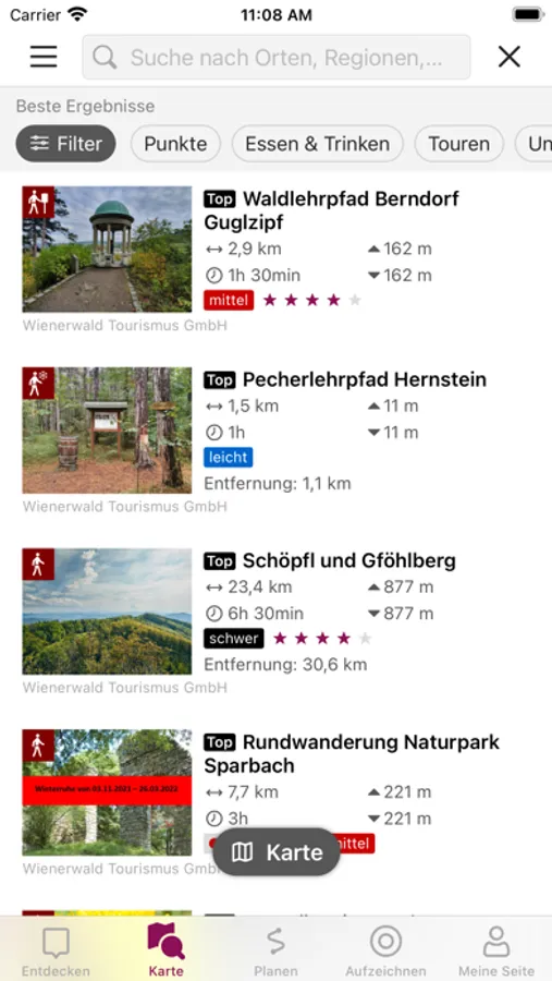 Die kostenlose Wienerwald-App ist ideal für die Planung Ihrer Ausflüge, Wanderungen, Rad- und Mountainbike-Touren im Wienerwald – bequem von zu Hause aus oder als Wegbegleiter vor Ort mit Informationen über Ausflugsziele sowie praktischen Wegweiser-Funktionen.