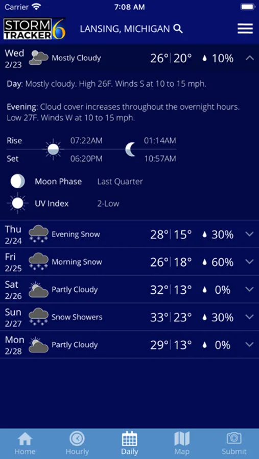 Never let the weather catch you by surprise again. The trusted weather experts of StormTracker 6 Team deliver Lansing and Mid-Michigan's most accurate hour-by-hour forecast for the next day and for the week ahead. Unlike other weather apps, you'll get a local forecast that is customized for you.