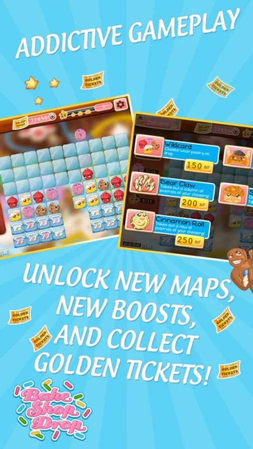 - Unlock new maps, new boosts, and collect Golden Tickets!