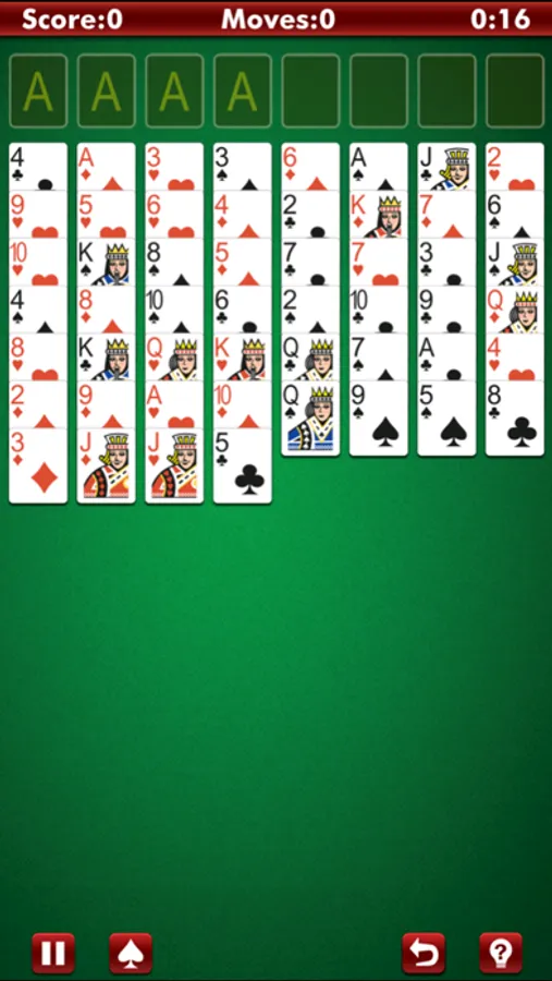 In this FreeCell game, you can move cards with a single tap or drag them to their destination. The aim is to move all cards to the foundation piles. Use the free cells and unlimited hint feature at any time.