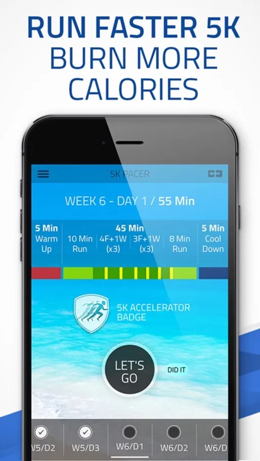 Improve your 5K pace and burn calories. This Is an 8 week program that combines running and speed intervals. Its your own personal coach to a faster pace.