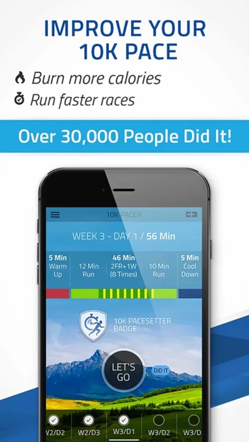 Improve your 10K pace and burn more calories. This is an 8 week program that combines running and speed intervals. Its your own personal coach to a faster pace.
