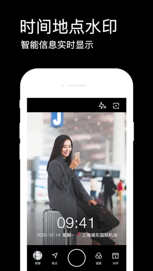 * 实时更新:水印可自动更新为实时的日期、地点、天气等信息,经纬度、海拔、速度也能记录