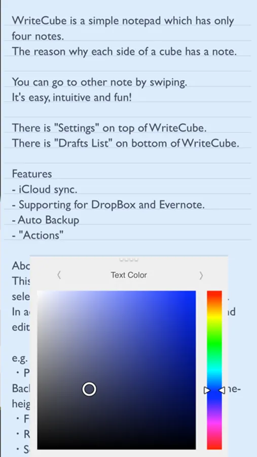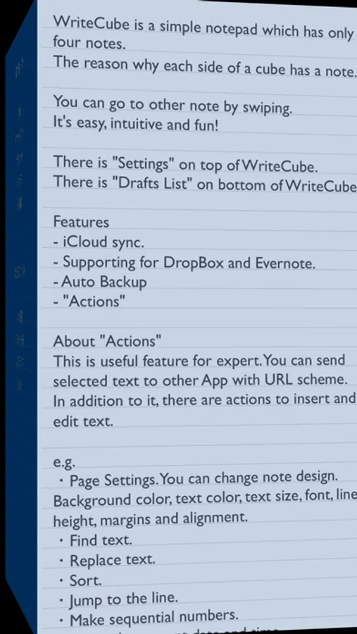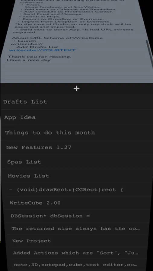 - iCloud sync. *There is size limit ( around half a million characters ).