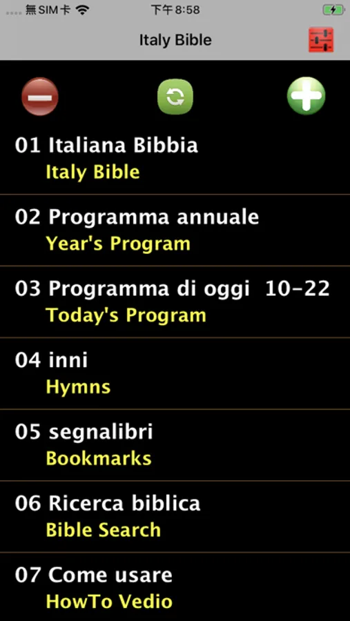 義大利語聖經,有聲聖經,睡眠功能,每日讀經進度,讀經進度。
