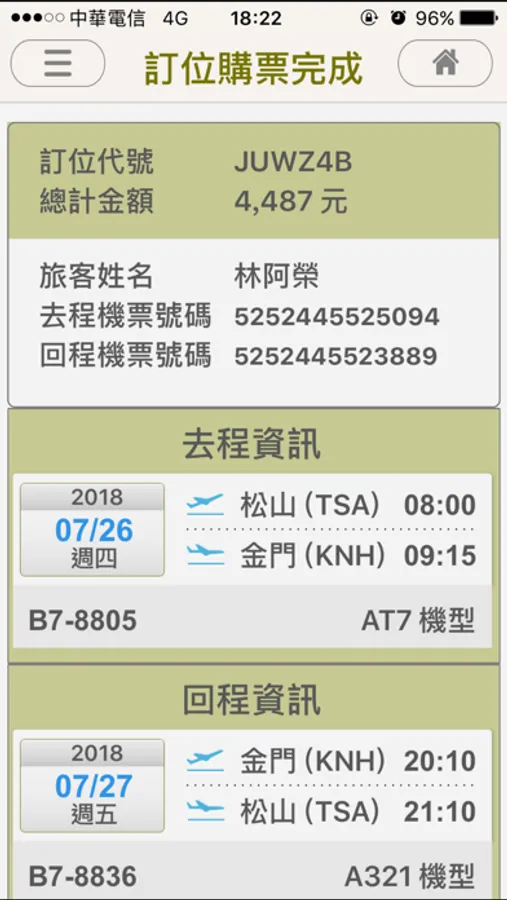 提供所有國內飛航航點的訂位購票服務,只要選擇您所需要的行程、航班及票價,再輸入搭機旅客資料及付款的信用卡後,就可輕鬆完成差旅行程的訂購。除了快速、簡便的訂購流程外,我們還不定期提供優惠票價,讓您省時又省荷包。
