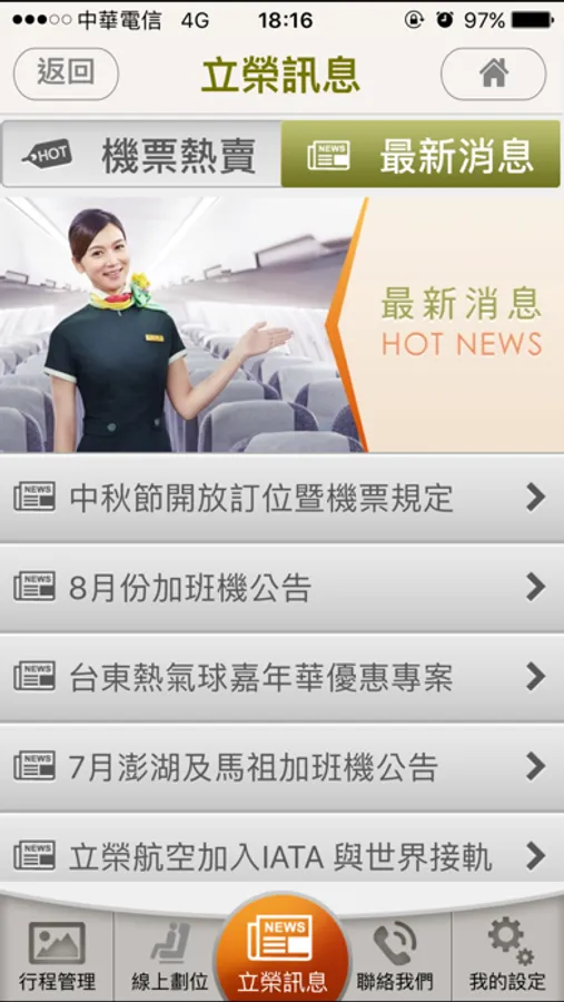 提供最即時的「最新消息」及「機票熱賣」訊息。