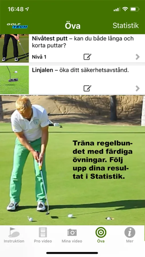 DAGENS APP - Toppbetyg av MacWorld: Med den här appen får du professionell hjälp med utslag, bunkerslag, putt, chip och pitch. Läs mer på: