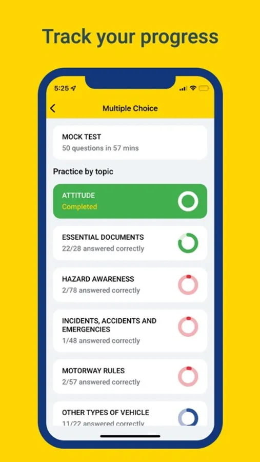 - Multiple Choice question bank containing all 960 practice questions for car, motorcycle, LGV, PCV, and ADI tests.