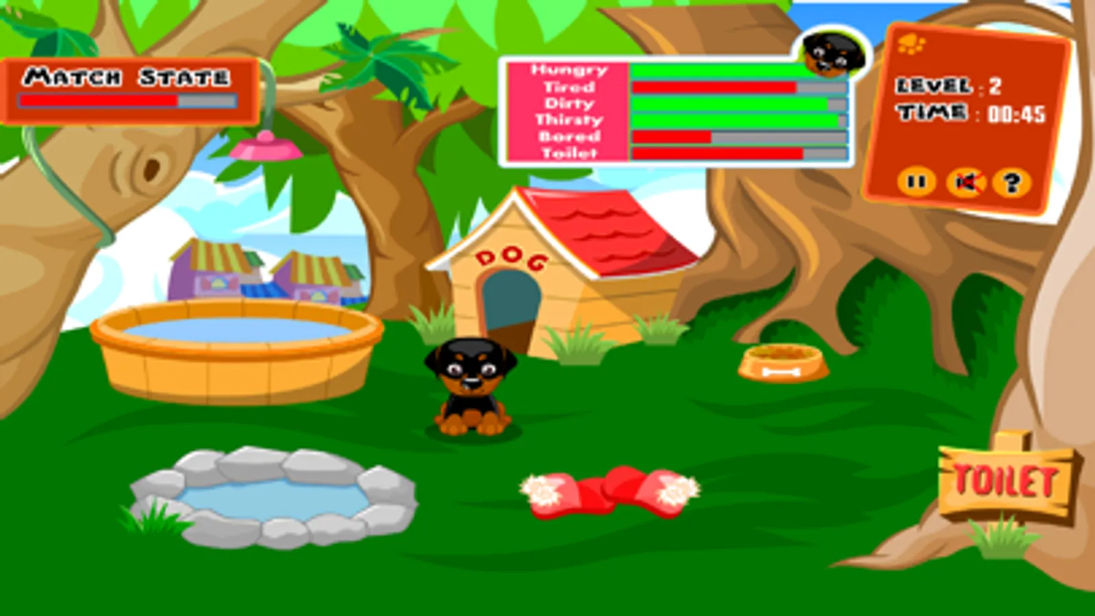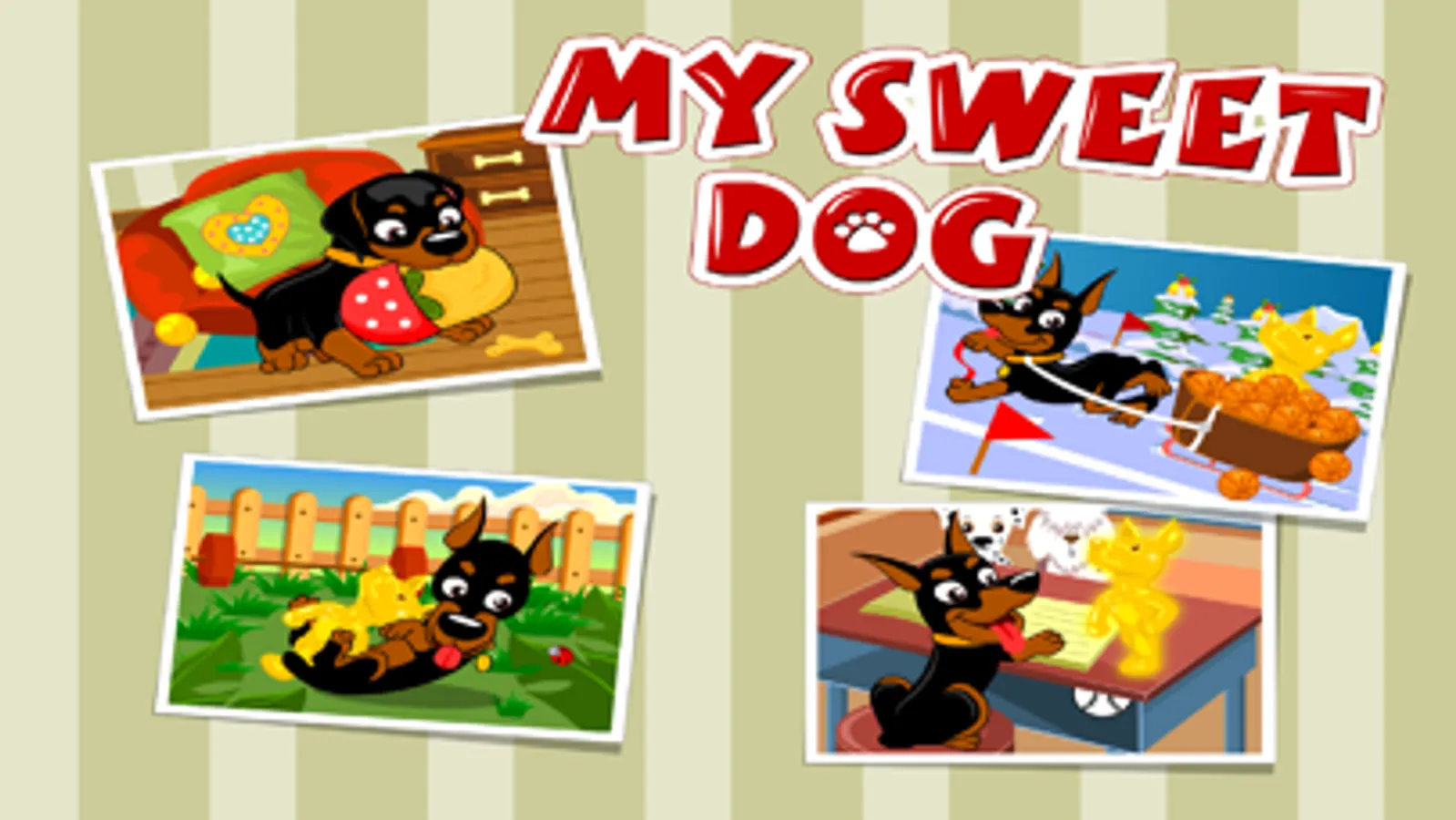 Play the popular game My Sweet Dog by Mary.com on your phone and tablet computer. In the first level of this game, you'll be taking care of a playful puppy called Frodo. You learn what is important in the life of such a small pup. Because a dog can easily be your companion for 10 to 15 years, it's important to bring it up right. Give him food and water. Play with him and take him out for walks. Wash him and make sure he gets enough sleep. If you do well, your puppy will grow into a lovely, happy and healthy dog. In the next level you will be able to train him and win competitions with him. In the third level, he's too old for competing, and you will take it easier. If you do well, you'll win photos of your dog! The better you do, the more photos you will earn. In this game you'll learn a lot about dogs. It takes a lot of time to raise and to take care of dogs, but if you do it well, they will be true, loyal friends. In the accompanying film, you can see how the game works.