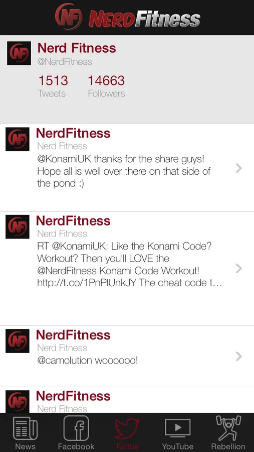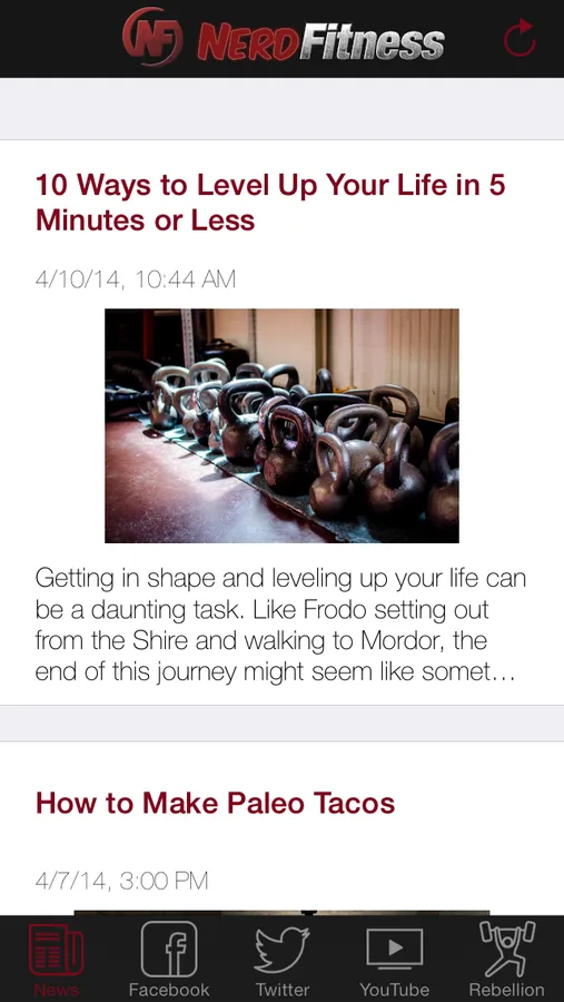 With this app you'll be able to get the most recent articles and blog posts, browse pictures and community updates on Facebook and Twitter, and watch the most popular Nerd Fitness videos all in one convenient place.