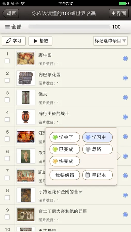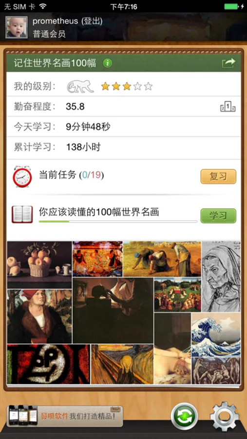 《记住世界名画100幅》依托易呗记忆和云存储引擎,针对图片显示特别优化,在获得世界名画带给我们艺术享受的同时,轻松自然地了解和记住这些世界艺术瑰宝。