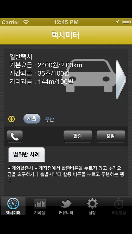 * The taxi fare system used in this app was created based on data provided by the Korea National Joint Conference of Taxi Association.