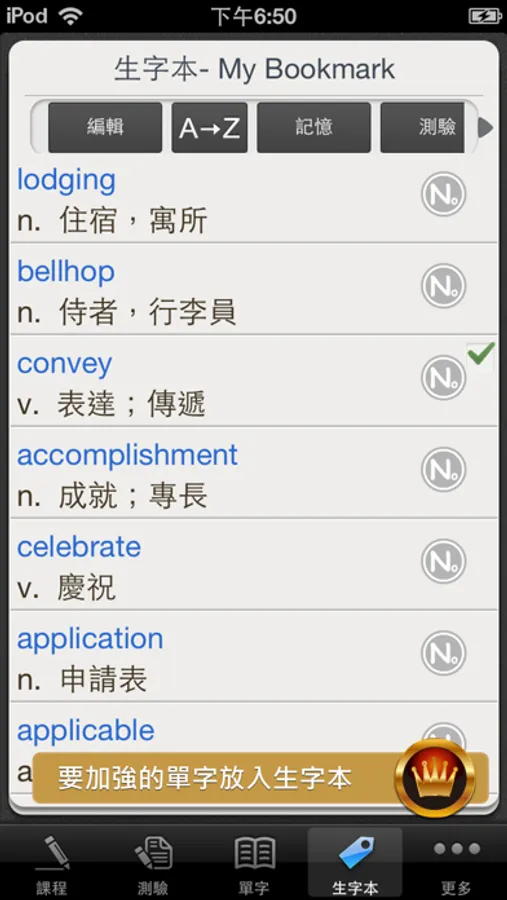 * 可將要加強的單字放入生字本,再特別加強記憶和練習。