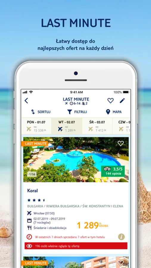- wskaże datę dostępności ofert wakacji first i last minute;