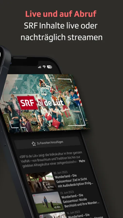 Mit der Play SRF App finden Sie genau das zum Streamen, wonach Sie suchen. Stöbern Sie in unserem breitgefächerten Angebot. Von packenden Serien und berührenden Filmen bis hin zu begeisternden Dokumentationen und Nostalgie weckenden Archivperlen ist alles mit dabei. Finden Sie schnell und einfach neue und bereits liebgewonnene Inhalte dank den praktischen Sortieroptionen nach Thema/Genre, Datum und Alphabet. Ihre Favoriten können abgespeichert werden, damit Sie diese später einfacher wiederfinden. Geniessen Sie beste Unterhaltung mit populären Inhalten wie «DOK Auf und davon», «Einstein» und «SRF bi de Lüt».