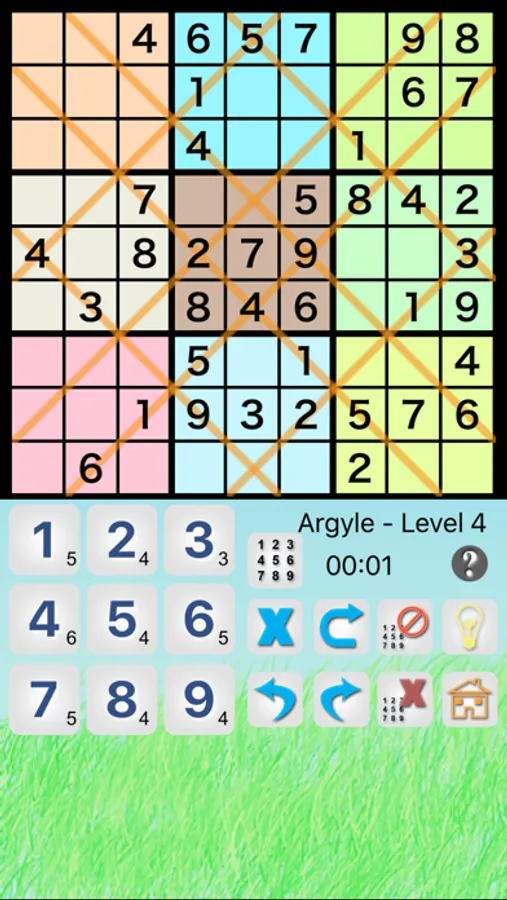 * Argyle Sudoku: every marked diagonal line contains each digit not more than once.
