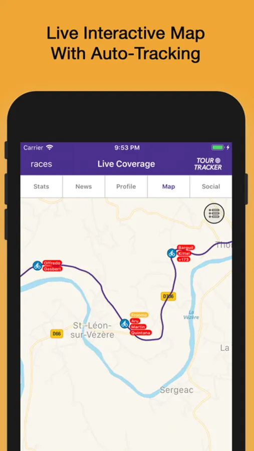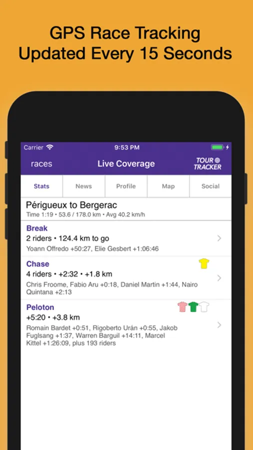 Tour Tracker PRO offers live race commentary, GPS tracking, race results, rider details, interactive stage maps and profiles, stage previews, race summaries, videos, and 100 more exclusive features for all three Grand Tours.