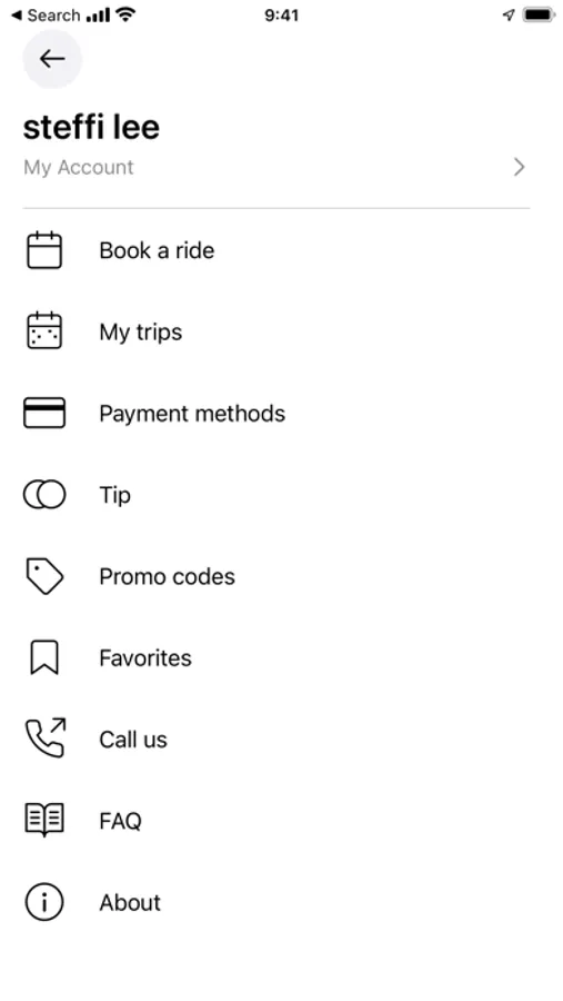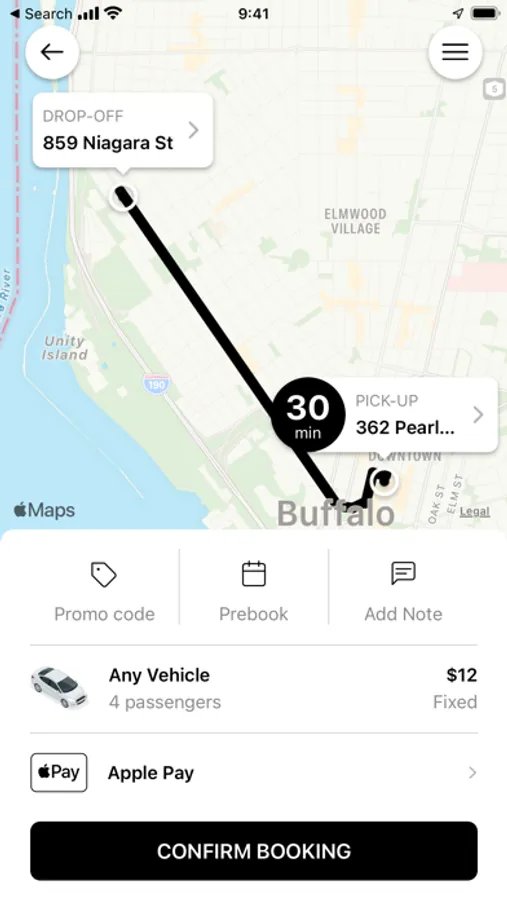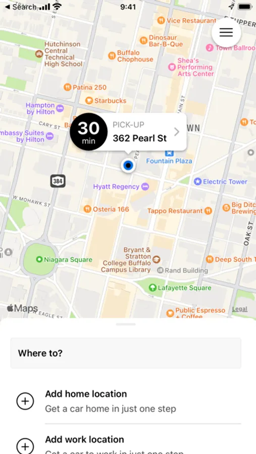 • Enter your destination address (this allows us to provide an estimated fare amount)