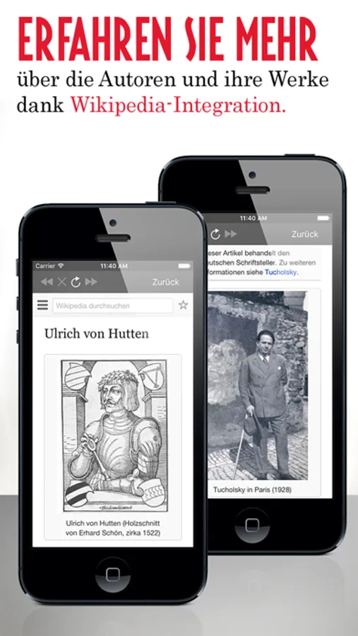 Die App enthält die wichtigsten deutschsprachigen literarischen und philosophischen Werke sowie historische Dokumente, die zwischen der zweiten Hälfte des VIII. Jahrhunderts und dem Höhepunkt der Weimarer Republik am Ende des Ersten Weltkrieges entstanden sind.