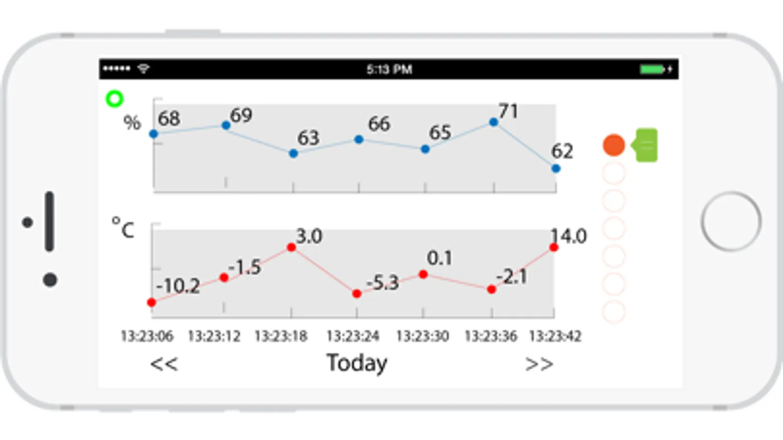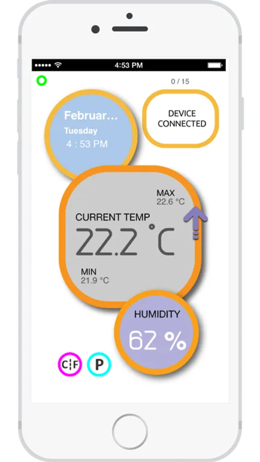 Connect the device "Thermo Jack" to iPhone/iPad/iTouch via the audio jack, the device read the temperature and humidity and send the information to the iPhone/iPad/iTouch.