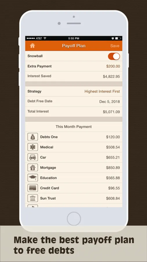 Use Debts Monitor to organize, monitor, and payoff all your debts, Debts Monitor use Snowball method to help managing your debts, which is the most popular debts payoff method and recommended by many finance experts.