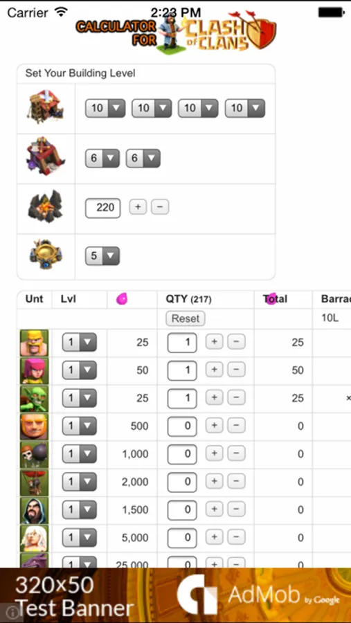 Clash of Clans — Troops and Spells Cost Calculator/Time Planner
