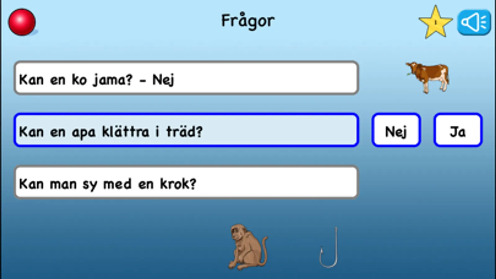 * Tryck på knappen med ljudsymbol på för att sätta på eller stänga av uppläsning av meningarna vid start inne i de olika övningsdelarna.