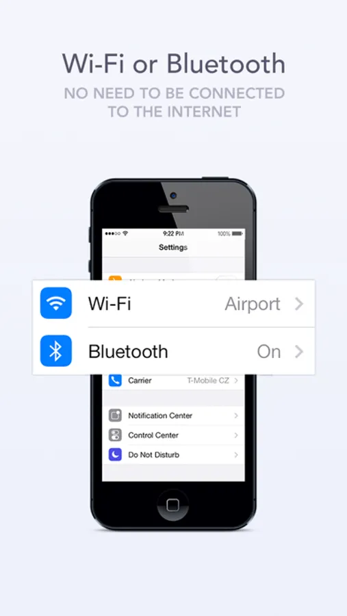 Files and photos are sent only between your devices, without making a copy somewhere in the Cloud. They never leave your local wi-fi network, keeping your files and photos safe.