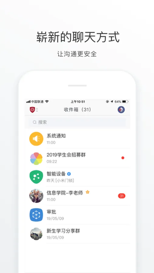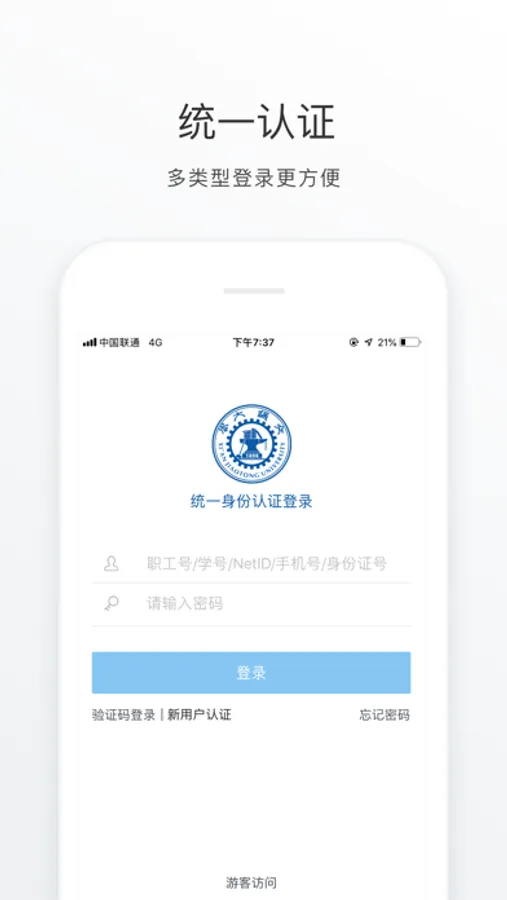 【产品特色】1,全新升级登录方式:登录统一认证网关,支持多类型登录。2,全新服务首页升级:支持多身份首页切换,提供多身份选择服务首页。3,“刷脸验人”黑科技进校园 ,新生认证不再愁。4,强大沟通群聊功能,超大附件便捷传输,隐私安全你独有。5,生活缴费小助手,智能生活小管家,原有的服务再升级。