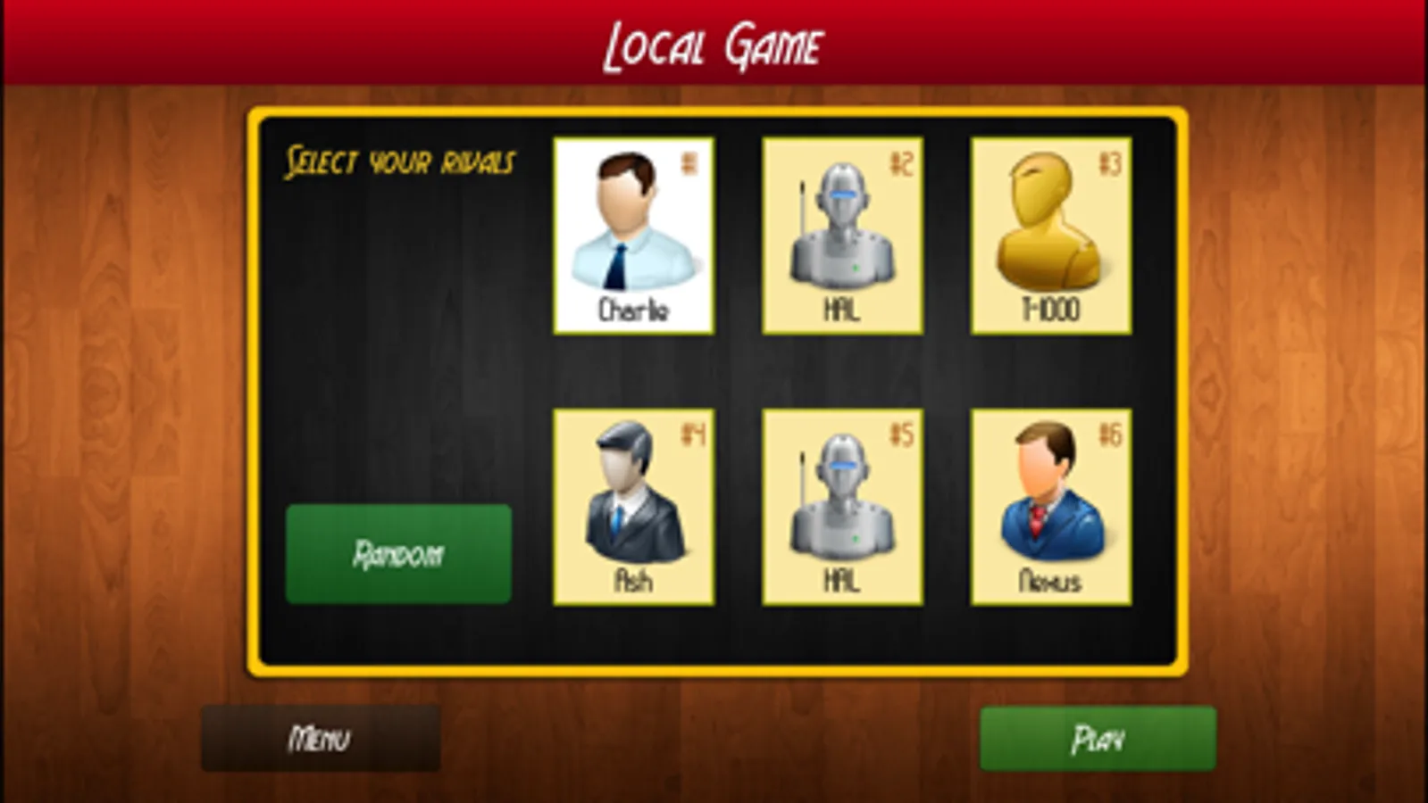 * Local game: play against four different AI players