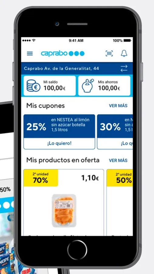 Descárgate la app, regístrate en el Club Caprabo si todavía no lo has hecho y empieza a ahorrar con los mejores cupones ahorro y ofertas personalizadas. Además, disfrutarás de ventajas exclusivas por ser titular de la tarjeta Club Caprabo.