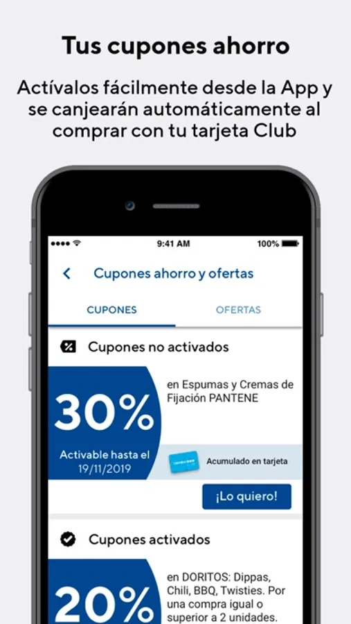 Todos tus cupones ahorro personalizados disponibles en todo momento. Actívalos fácilmente cada semana desde la App y se canjearán automáticamente al comprar con tu tarjeta Club Caprabo.
