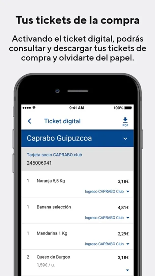 Identifícate en nuestras tiendas Caprabo con la versión digital de tu tarjeta Club Caprabo. ¡Tu tarjeta Club Caprabo en el móvil, ya no es necesario que lleves la tarjeta física!
