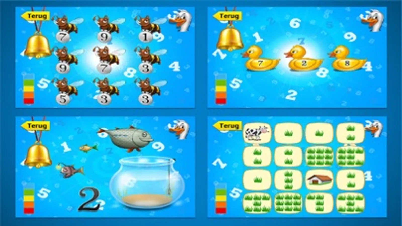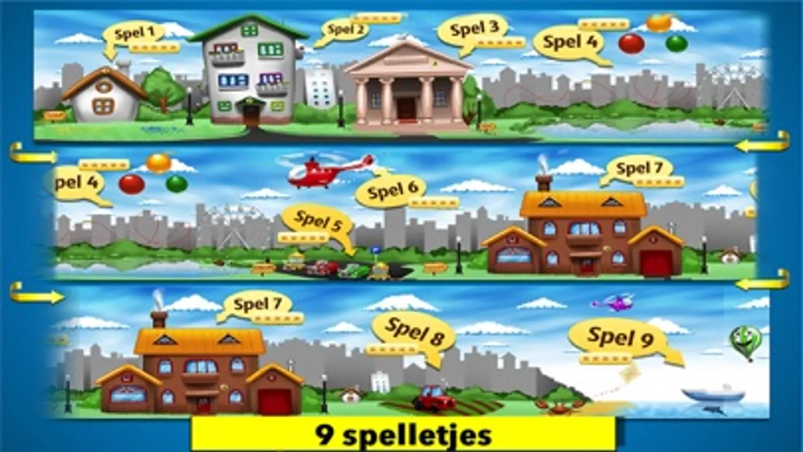 Elk spel heeft 5 niveaus, die moeilijker worden naarmate het kind ze correct beantwoordt. Na 5 correcte antwoorden krijgt het een ster en ga het naar het volgende niveau. 5 sterren betekent een nieuw spel en toffe beloning.