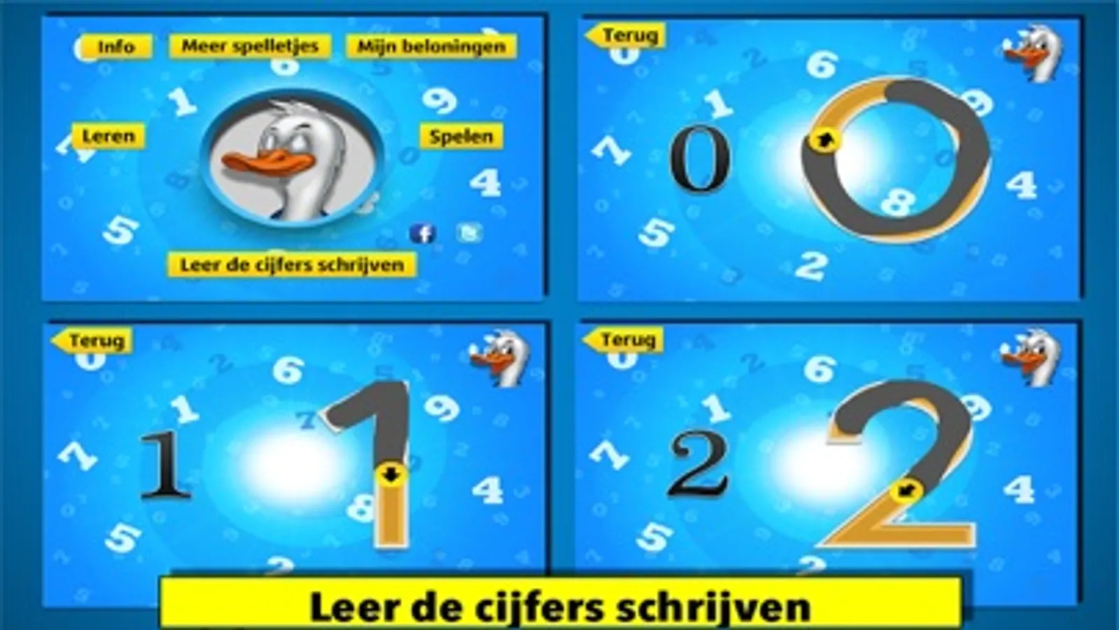-Leer-mode schrijven: leer hoe je de cijfers schrift en probeer het zelf ! Je wordt wel geholpen!