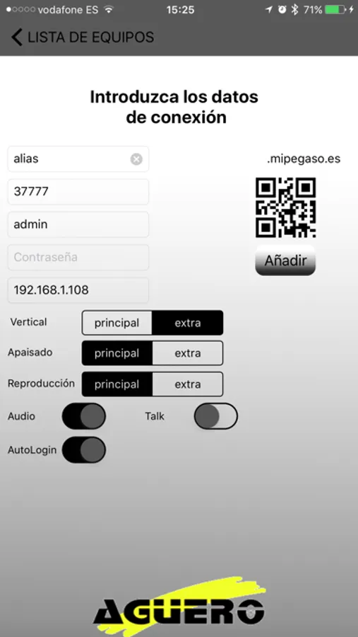 Aplicación para la visualización de cámaras de videovigilancia instaladas por la empresa de seguridad Agüero Proyectos e instalaciones, SL