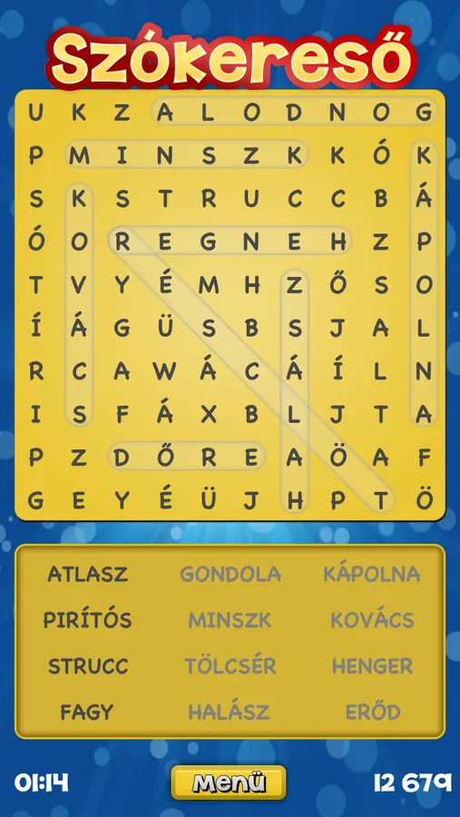 A Szókereső egy klasszikus szókirakó játék. A játék célja, hogy adott időn belül megtaláld és kijelöld a táblán elrejtett összes szót.
